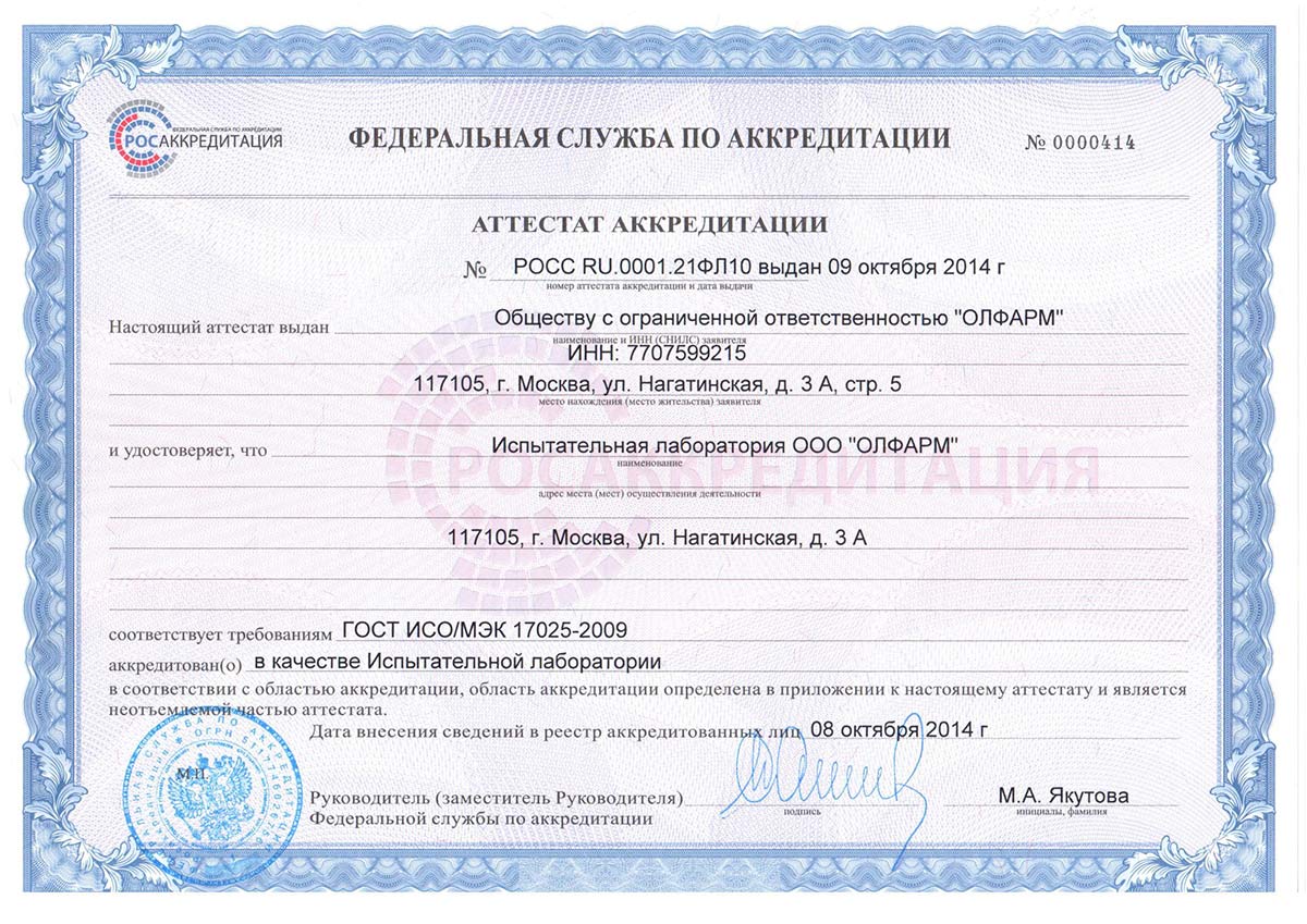 Аттестат аккредитации
