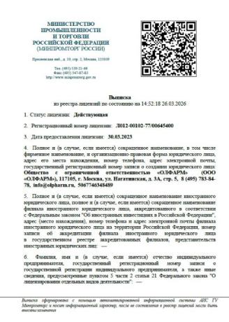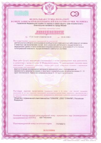 Лицензия на производство лекарственных средств для медицинского применения